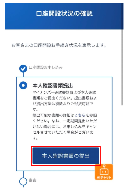 ↓のような画面になるので、「本人確認書類の提出」を押しましょう。