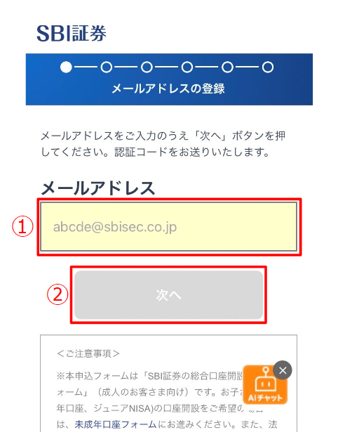 SBI証券の口座開設ページに行き「口座開設にすすむ」のボタンをクリックしましょう!