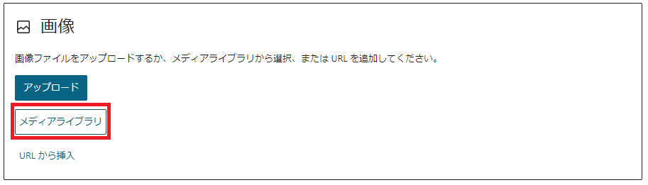 新規ブロックを作成して「画像」選択。「メディアライブラリ」を選択してください!「アップロード」のボタンから挿入した画像は自動圧縮されませんでした。